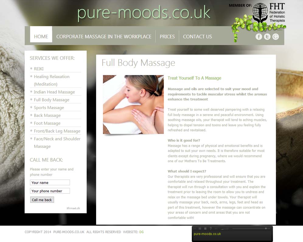The requirement for a masseuse was not just to display the many services. But to do this in a way which reflected the respected profession in the correct fashion.